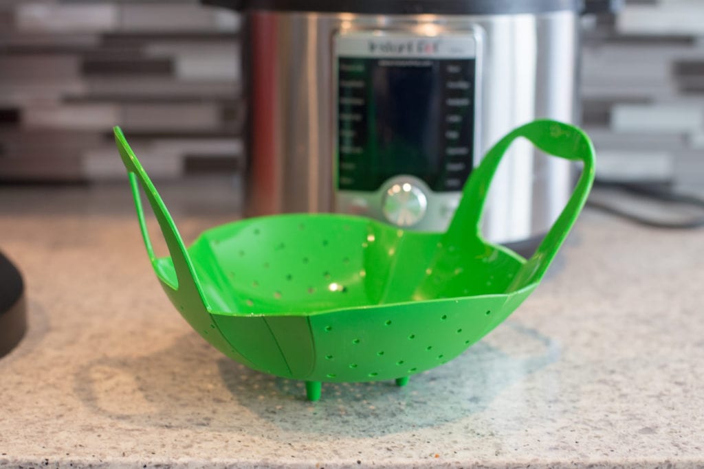As you can see, the silicone material conforms to the Instant Pot when you lower it in, and its handles come together in a locked position, making it easy to lower and lift. You’ll want to make sure not to overload the steamer when you use it, as the handles need to be able to close so there’s space for steam to build up pressure in the pot.